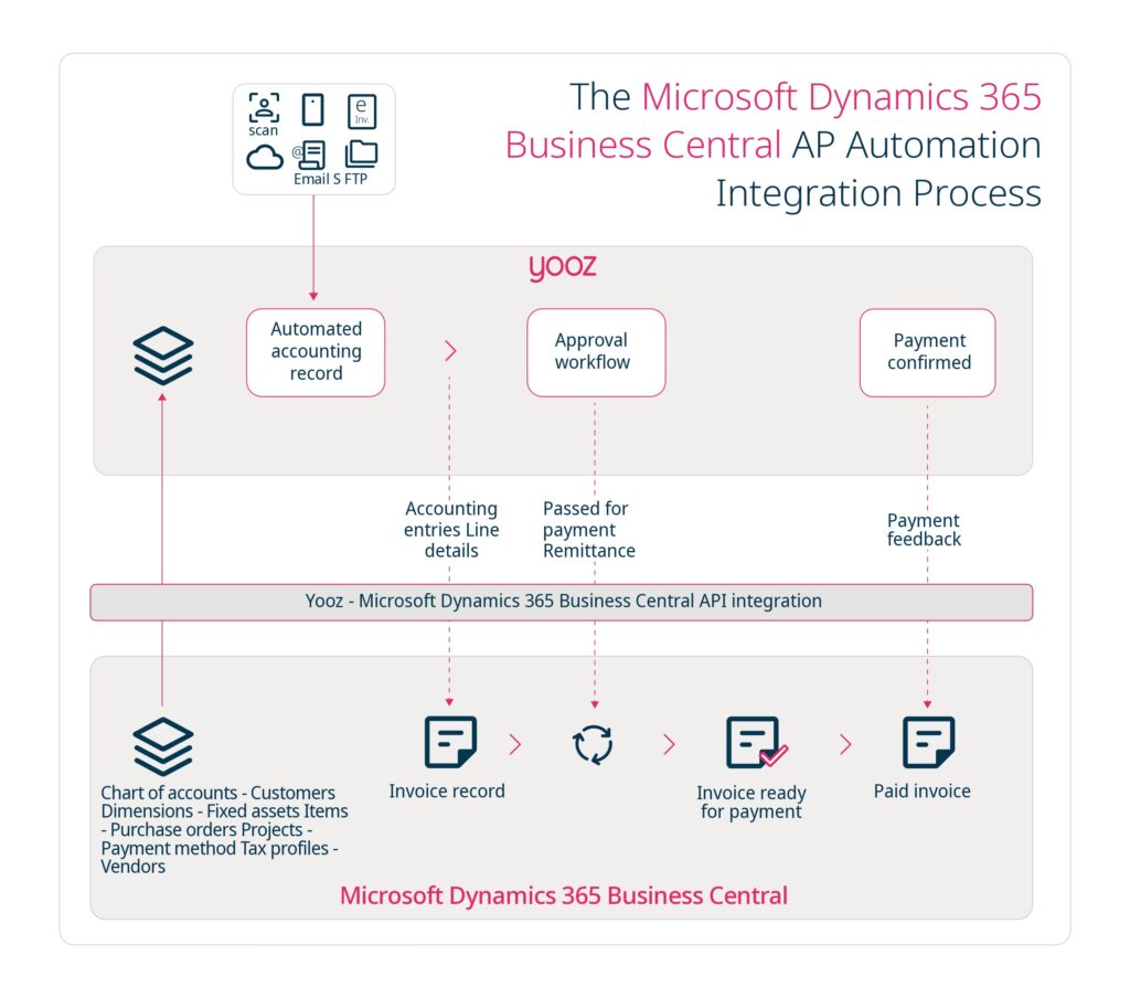 - Benefit from maximum connectivity. Yooz and Microsoft Dynamics Business 365 Central are the perfect duo when it comes to automatically and seamlessly exchanging data, down to each paid invoice.