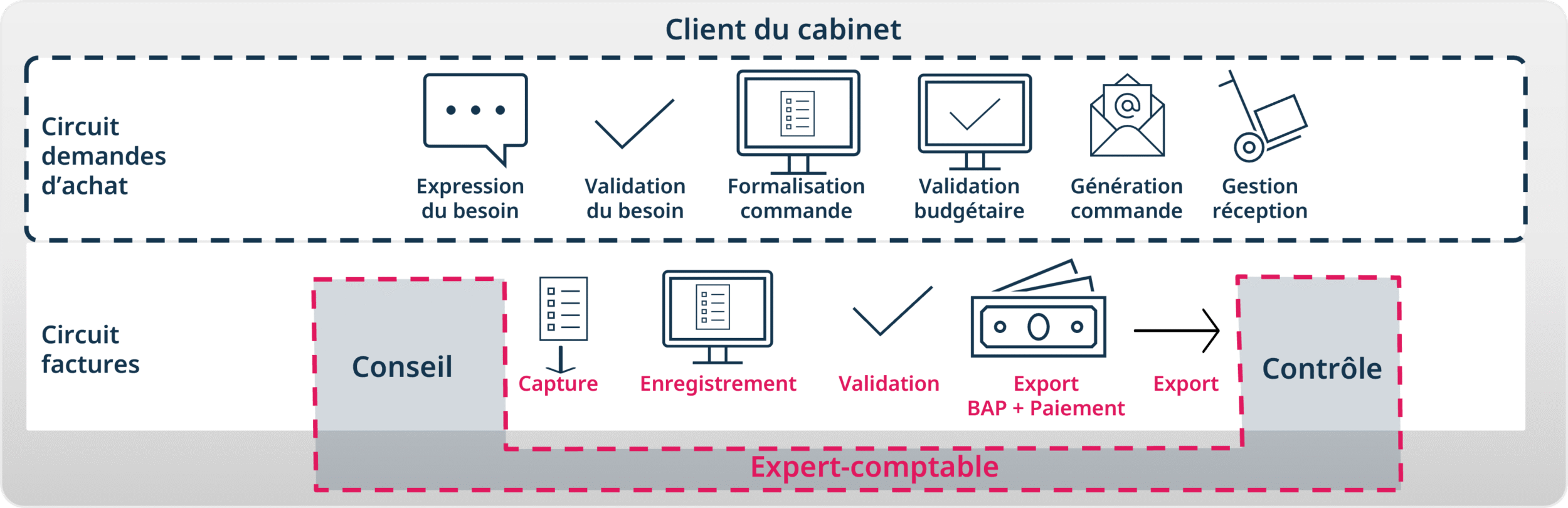 - Optimisation des processus comptables de la demande d’achat jusqu’au paiement de la facture fournisseur (workflows de validation et préparation des paiement)